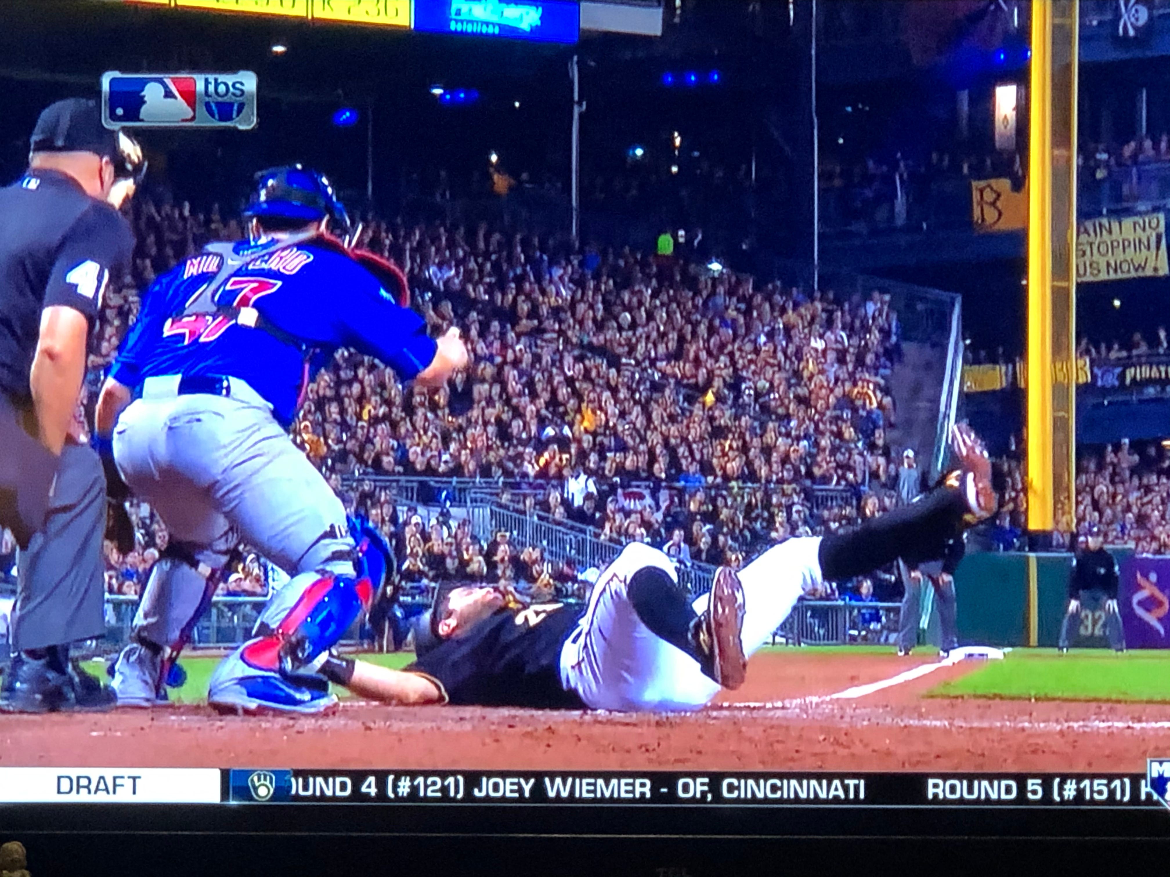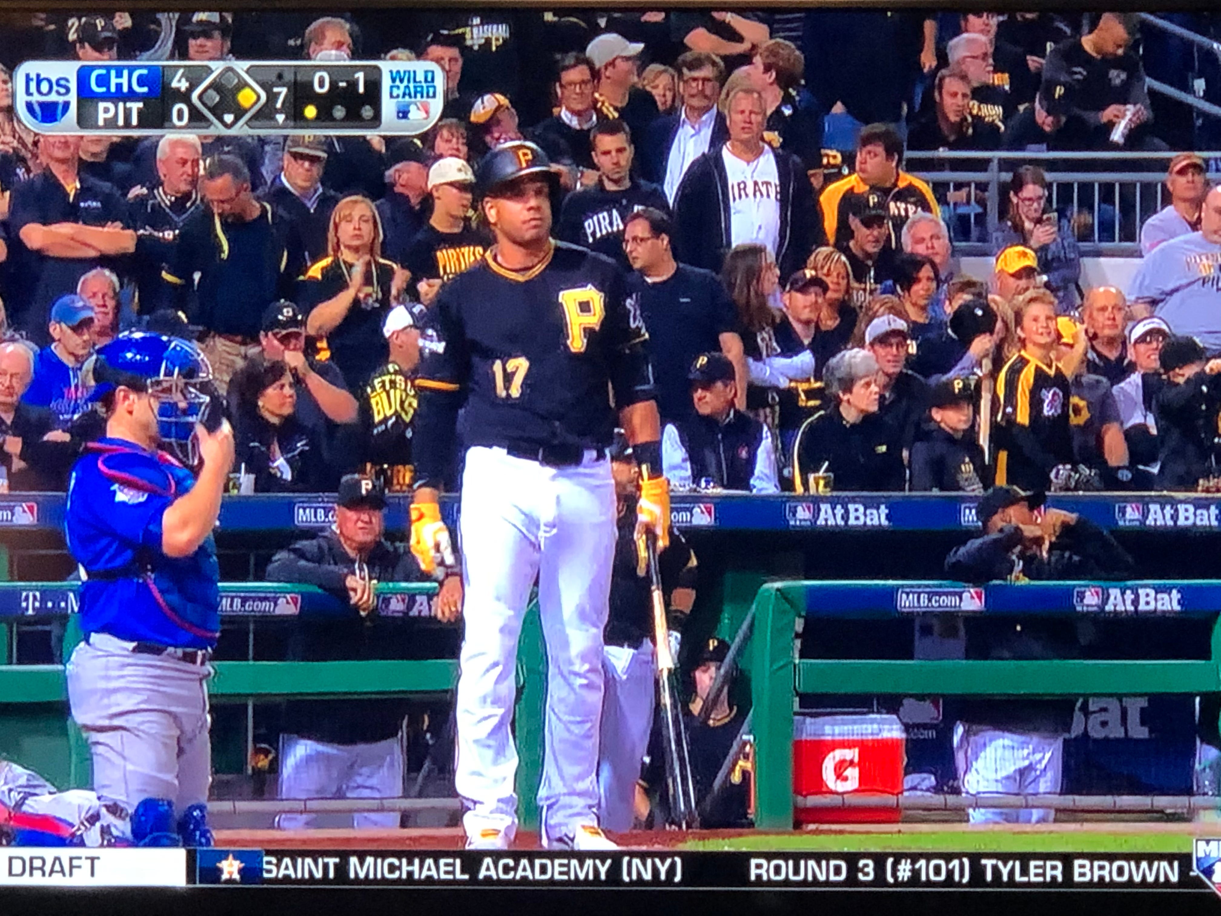 Bryant grounds into a double play, and that brings up Rizzo, who the Pirates fans boo. I guess just for being awesome.