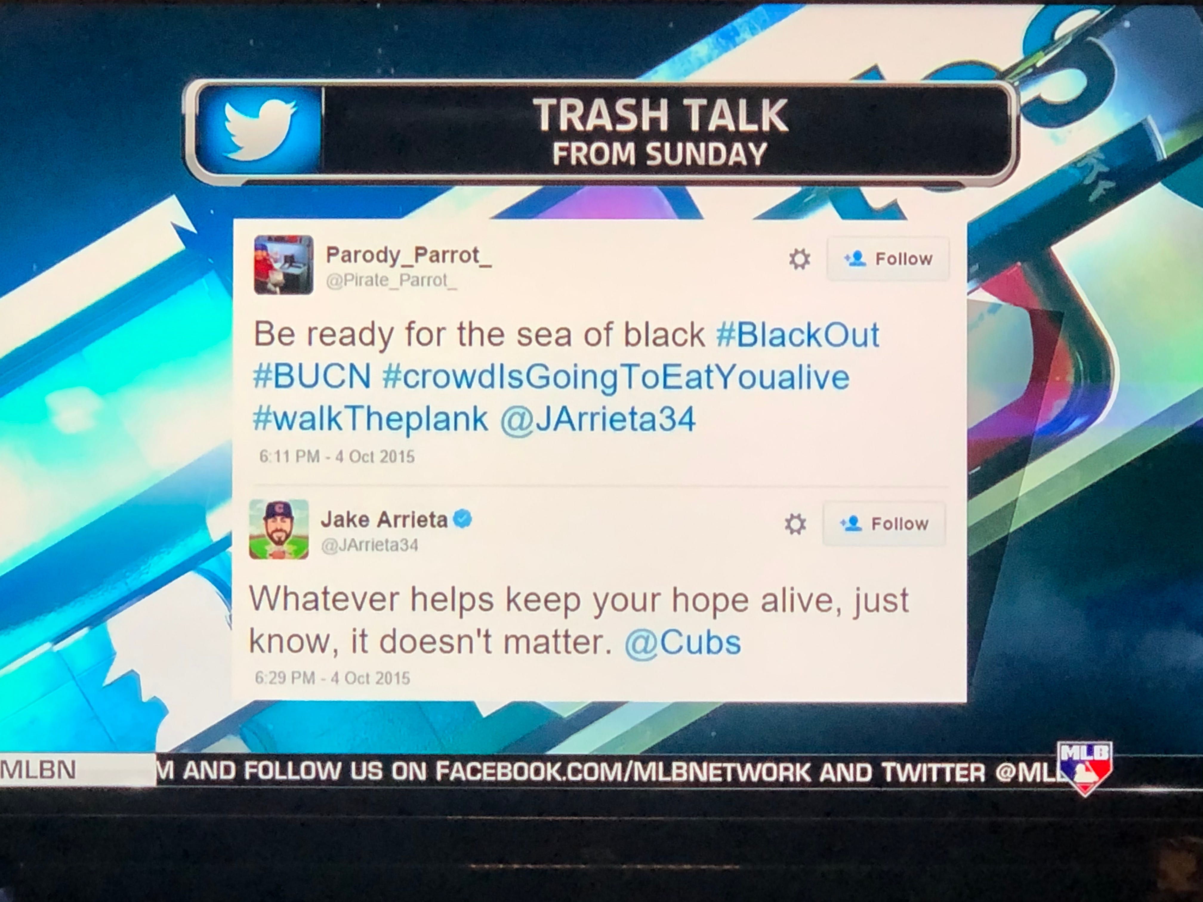 Cal observes that the Pirates are stepping out a lot on Arrieta trying to keep him from getting into a rhythm. Darling says, “They’re just delaying the inevitable.”