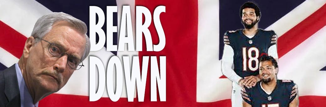 And, after a few minutes I settled into a comfortable mode just about the time Caleb Williams and the boys did and we all thoroughly enjoyed the Bears thrashing of the Jacksolondonville Jaguars. Over the last two weeks, the Bears have now whupped up on each of the kitty teams that joined the NFL in 1995.