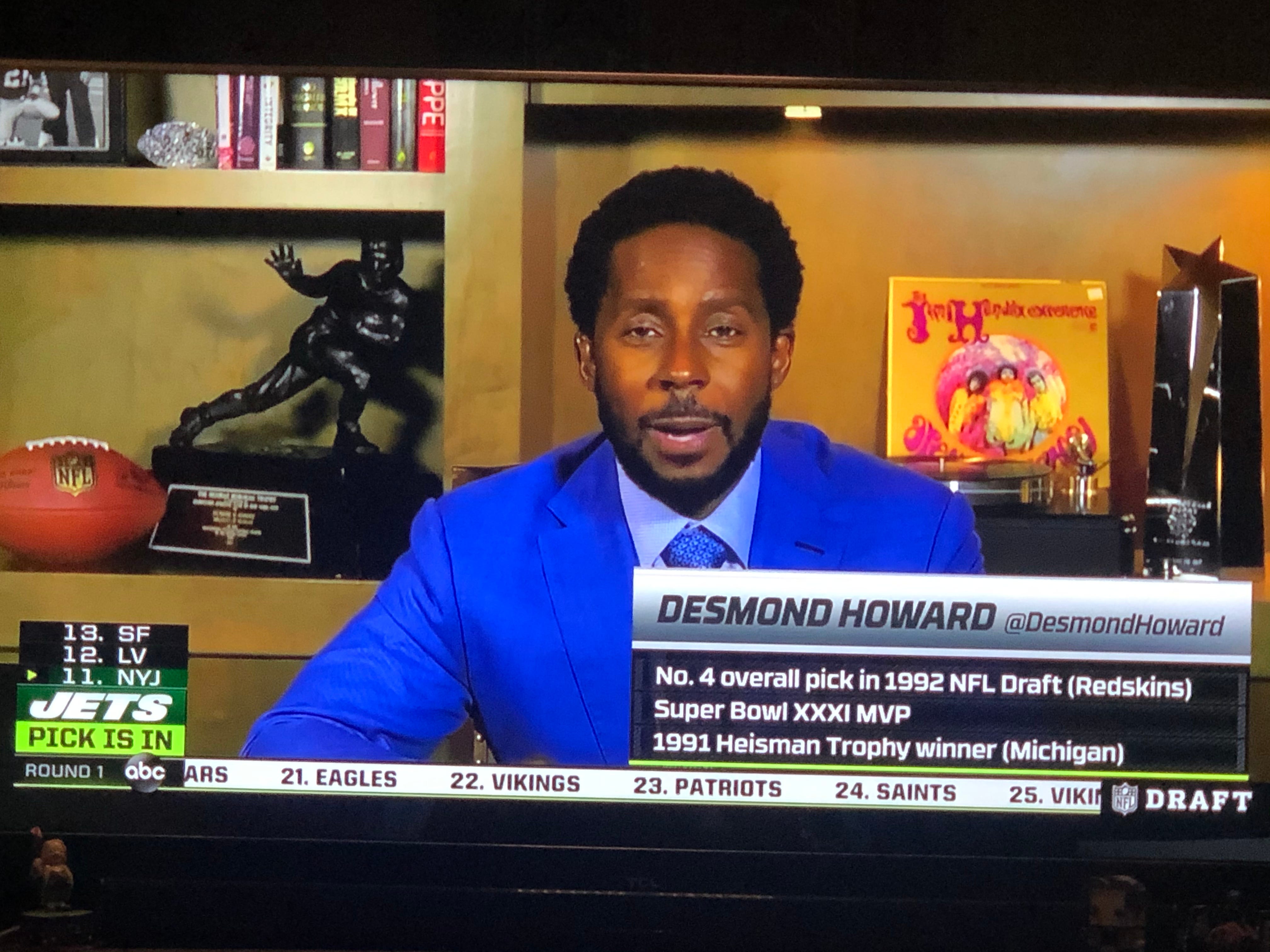 Meanwhile on ABC the College GameDay guys are covering the draft, too, and Desmond Howard put the bookcase prop competition to rest.