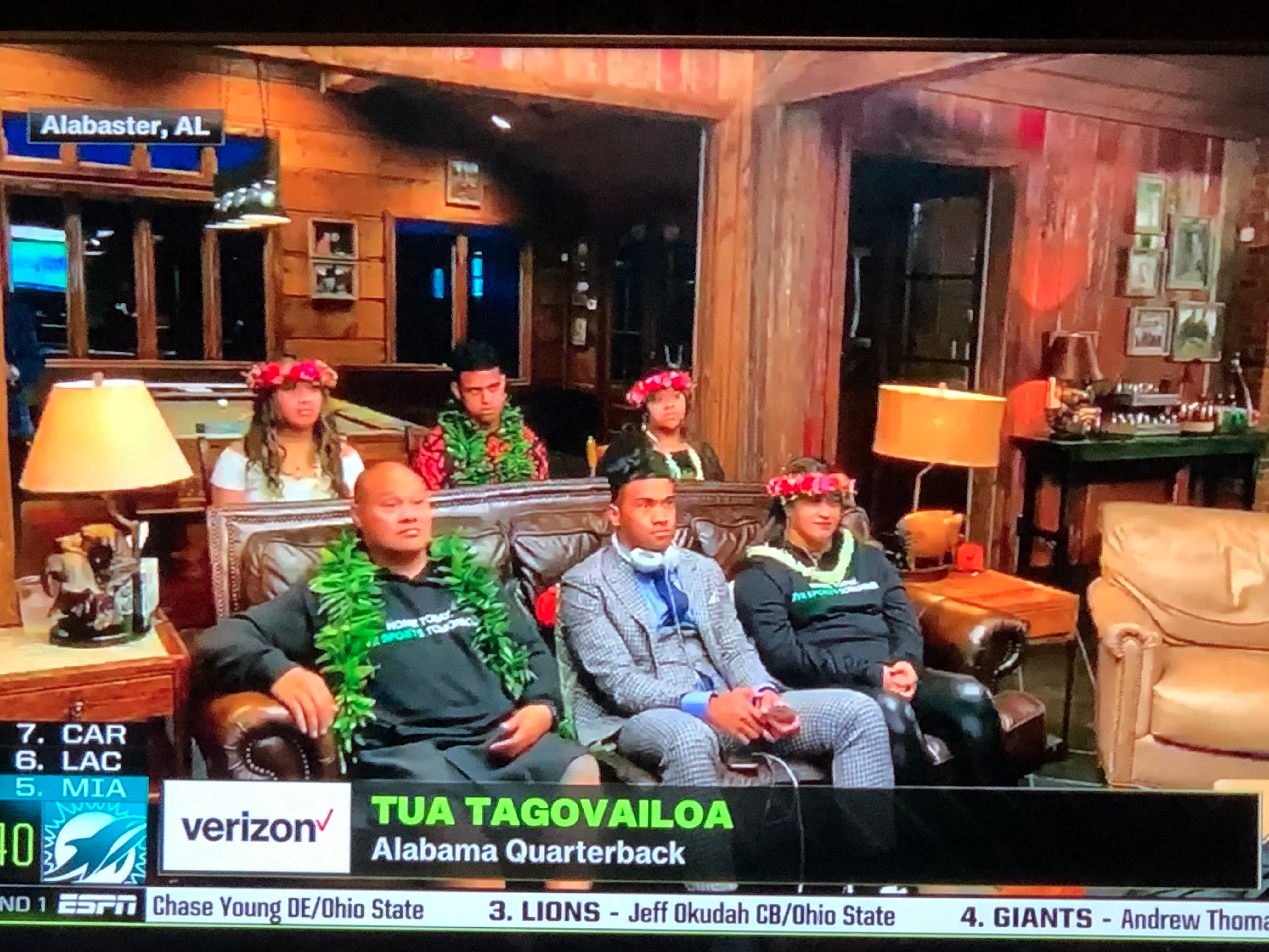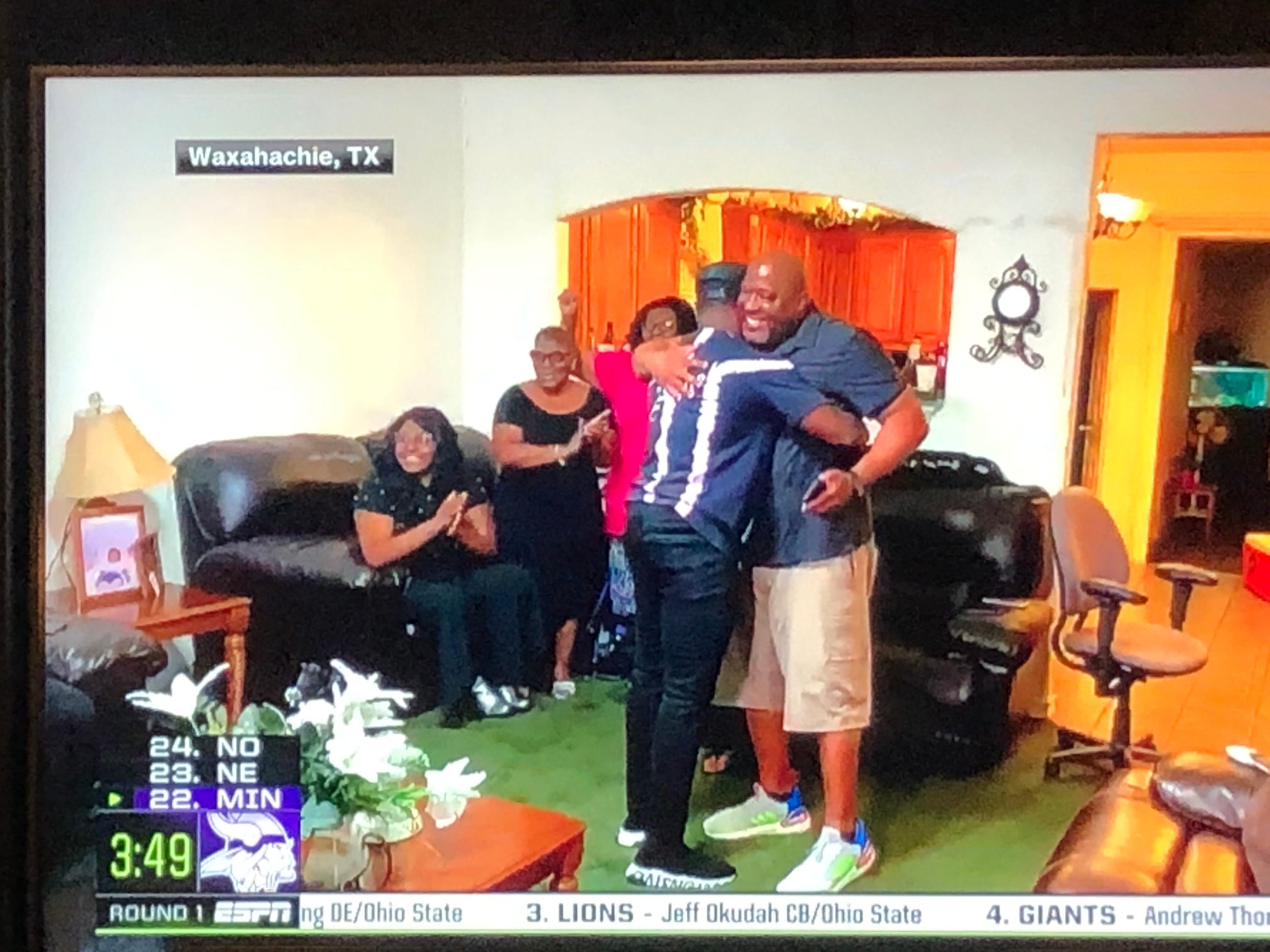 Giants take Andrew Thomas, OT from Georgia. ESPN gets a great shot at home with his mom and dad, Marlo Thomas and Phil Donahue.