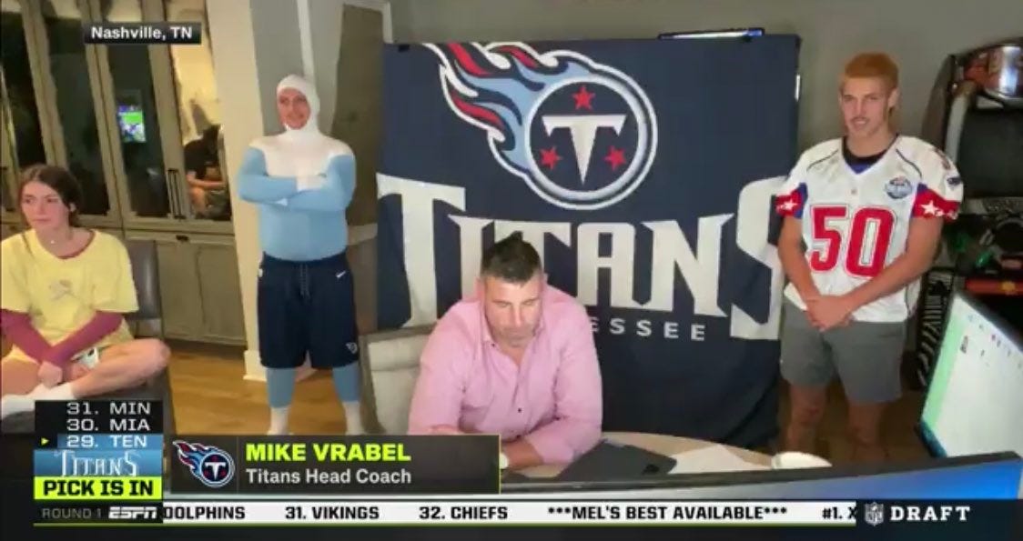 I'm with Kap. Nothing puts it all in perspective like the draft. It’s not like we’ve been seeing shots of staged protests, hospital staff overwhelmed and weeping on the job or people visiting their grandparents by talking through the windows of nursing homes for weeks. Glad a made for TV job fair is what finally brought it home for you.