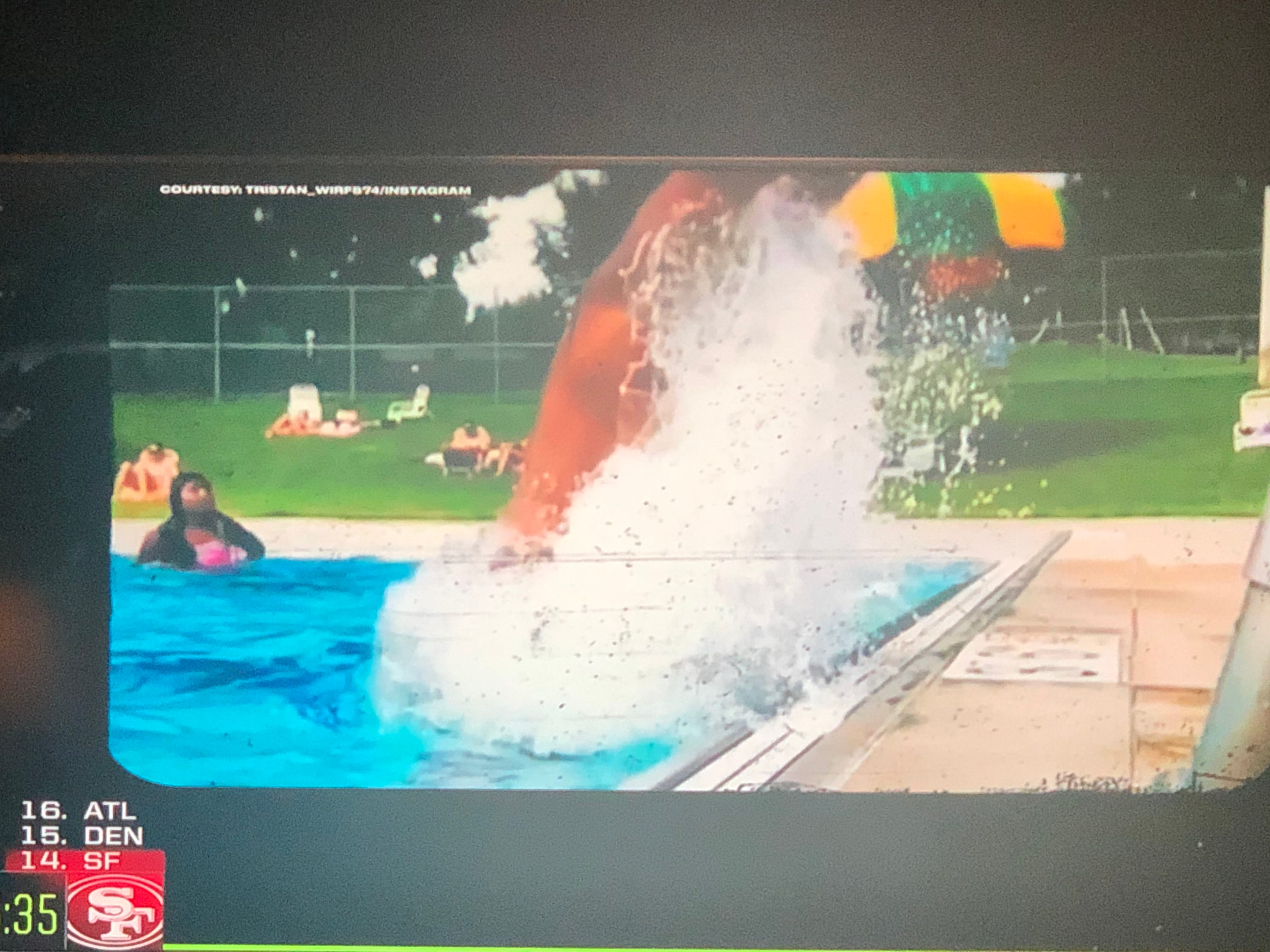 Bucs take Tristan Wirfs, OT from Iowa and ESPN shows him jumping out of the pool.