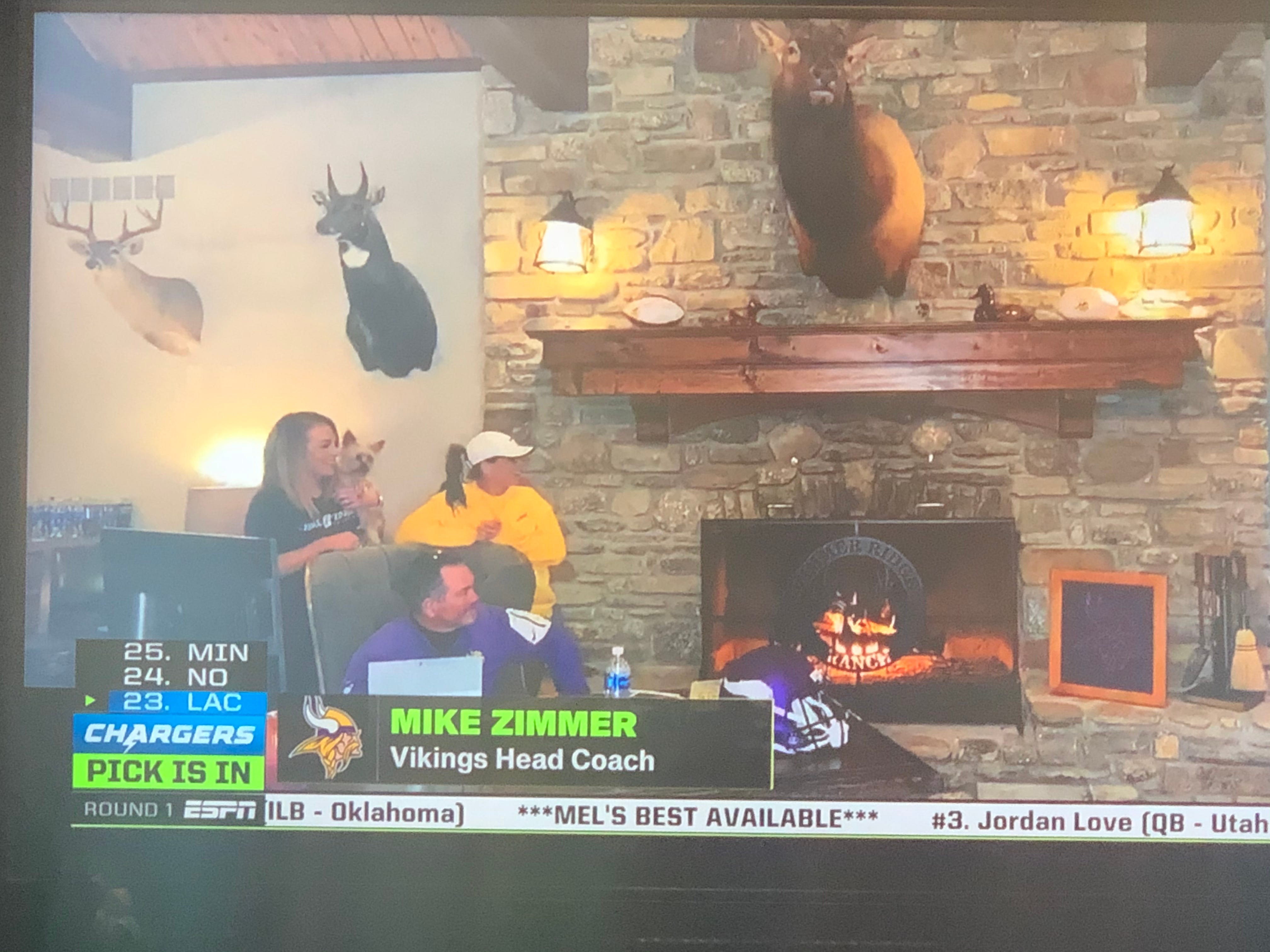 The Vikings are picking in the Bills' spot after trading Stefon Diggs, and take Justin Jefferson, a WR from LSU. I don't know about the pick, but I do know that Rick Spielman, the guy who make the pick is Chris' brother and used to work for the Bears...oh, and he puts his shoes on before his pants. Seriously.