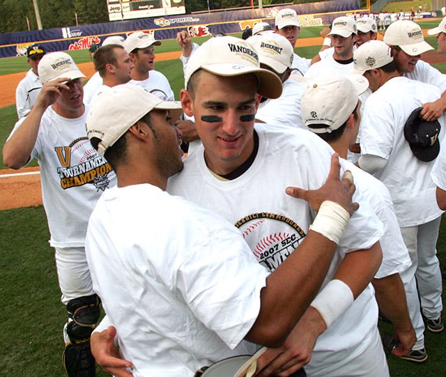 Here’s a photo of Flaherty and his teammates celebrating the announcement that Carter Hawkins would not be getting any at bats in the 2007 College World Series.