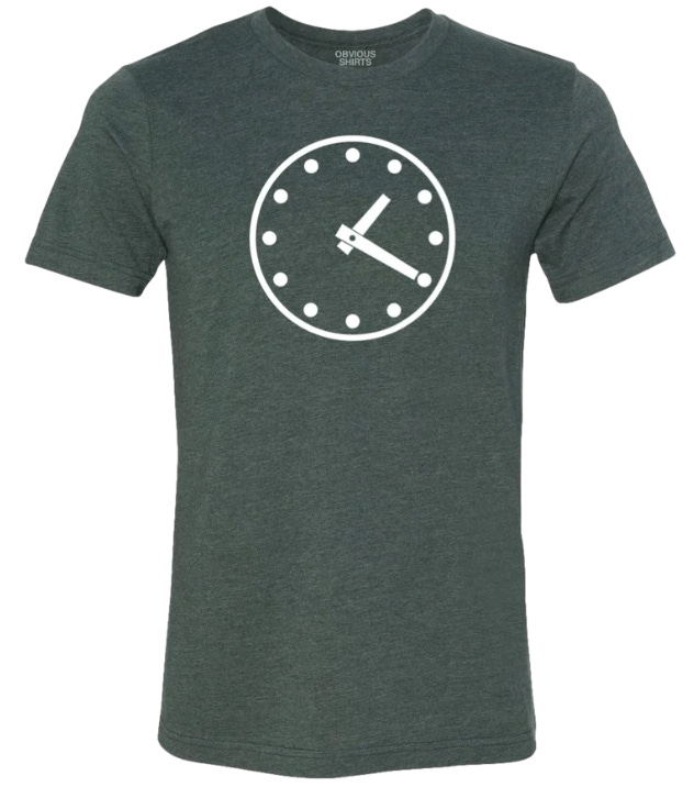 If I may recommend a purchase, the Wrigley 1:20 clock is a great shirt.