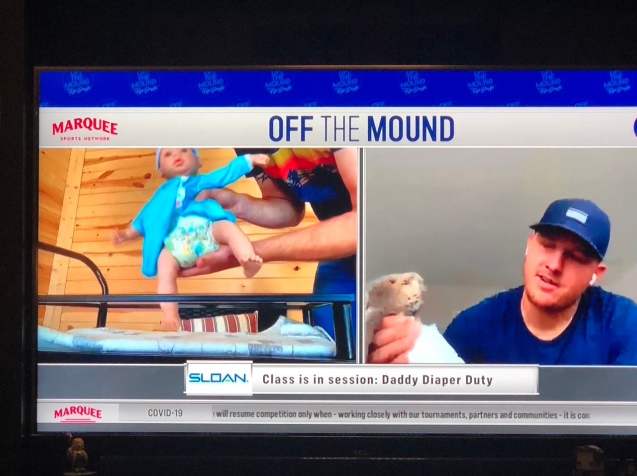 Trout’s wife is pregnant and Dempster has four kids so he’s decided to give Trout a diaper changing tutorial. Dempster says knowing how to change a diaper will make your wife love you. I have a Jake Peavy joke around here somewhere. I can’t find it. Let’s move on.