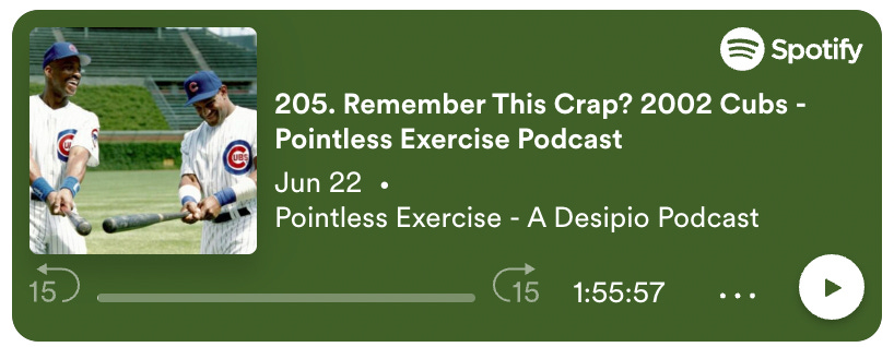 Sandwiched in between the 88 win near-miss 2001 Cubs and the 88 win heartbreaking 2003 Cubs were the gawdawful 2002 Cubs. They got a manager fired, which got Ron Santo's number unofficially unretired before it could actually be retired. Moises Alou showed up and immediately got hurt. Fred McGriff was still around putting up completely hollow stats.