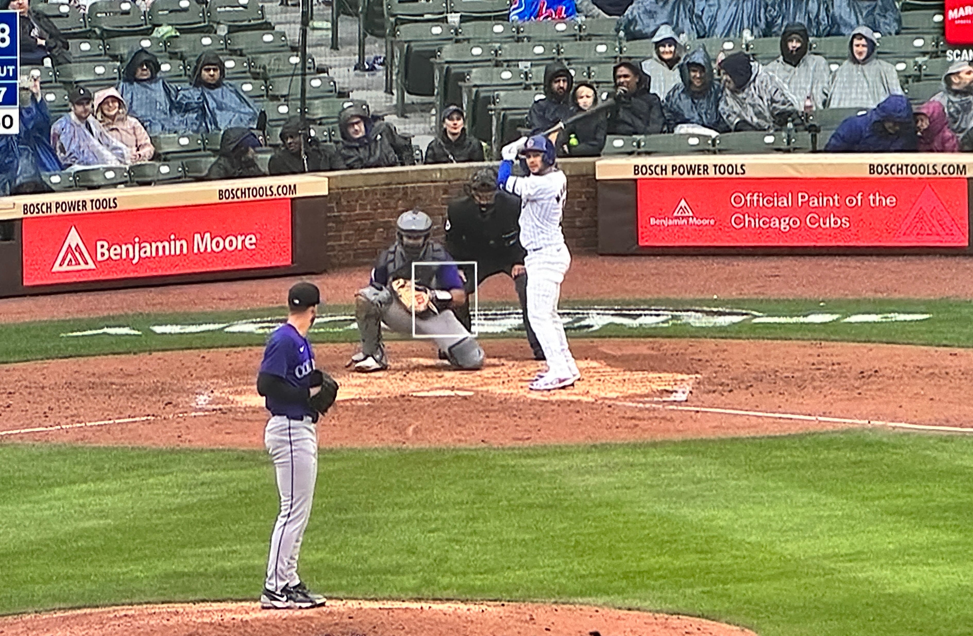 The one we see on Marquee or any other RSN (I think NBC Sports Chicago has one, but nobody’s watched that channel in at least year, so we can’t be sure) looks right, but it’s just some person in a truck adjusting a box based on where they think it should go.