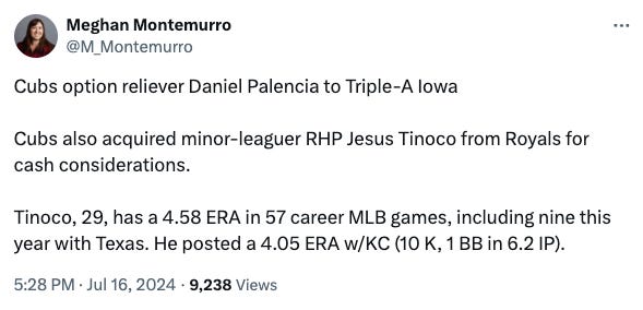 Remember this spring when people were talking about how the Guardians should trade Emmanuel Clase to the Cubs because the Cubs needed a closer (still do) and the Guardians were going to be bad? Well, the Guardians have the second most wins in baseball and the Cubs are in last place. Fun.