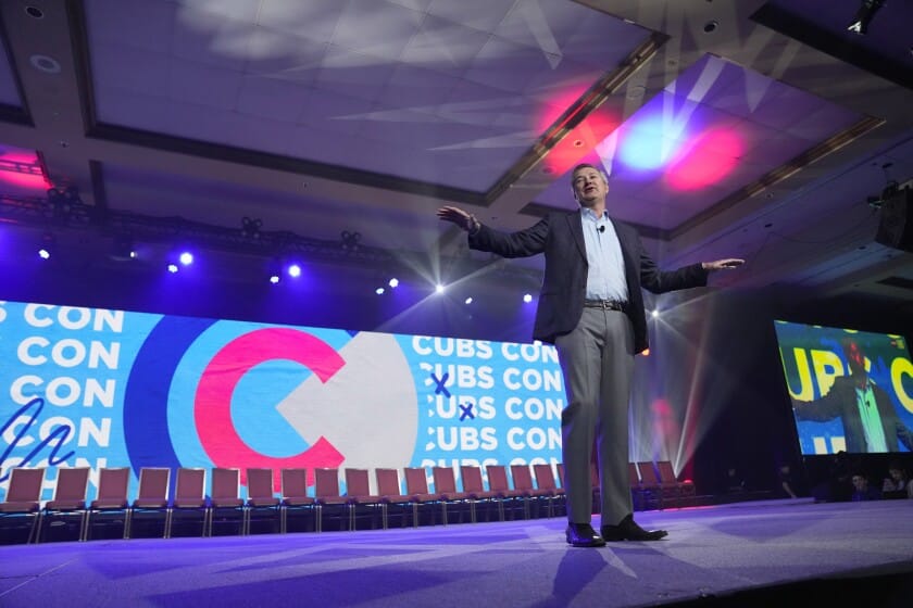 Tom Ricketts' role at the Cubs Convention has been downscaled pretty sharply. He used to give a kind of state of the team speech during the opening ceremonies and for the first few years he and some of his idiot siblings would do a Q and A panel. Now, his role is limited to coming out to kick things off and to limit the opportunity for fans to boo him while he introduces the next inductees of the Cubs Utility Tunnel of Fame.