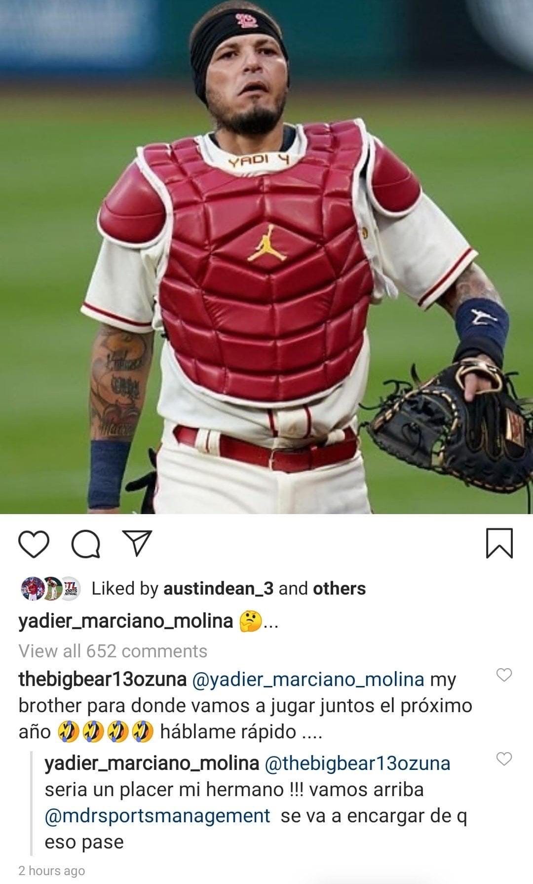 Yadi and former teammate Marcel Ozuna are both free agents and yesterday they took to the ‘Gram (as the kids call it) to ponder where they could sign together.